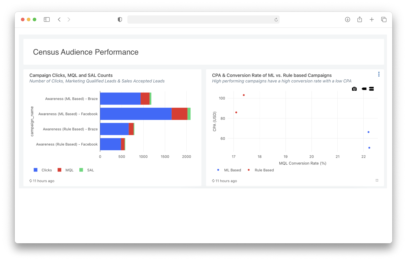 • Next steps - Productionalize your ML model and visualize ad campaign performance synced from your Census audiences